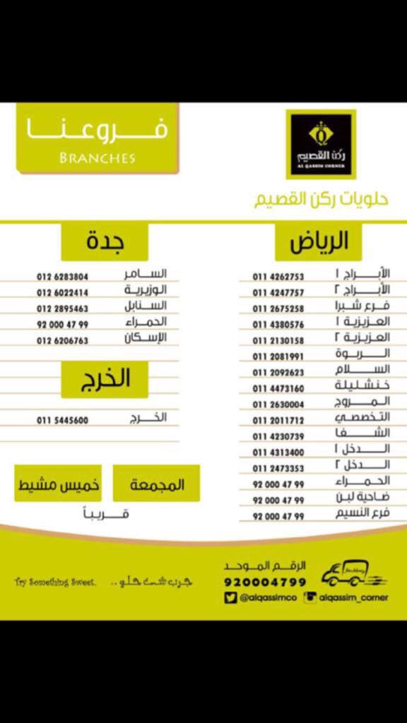 حلويات ركن القصيم On Twitter Fayzh77 في المرفق جدول وقائمة بالفروع Http T Co Bbndqo9oow