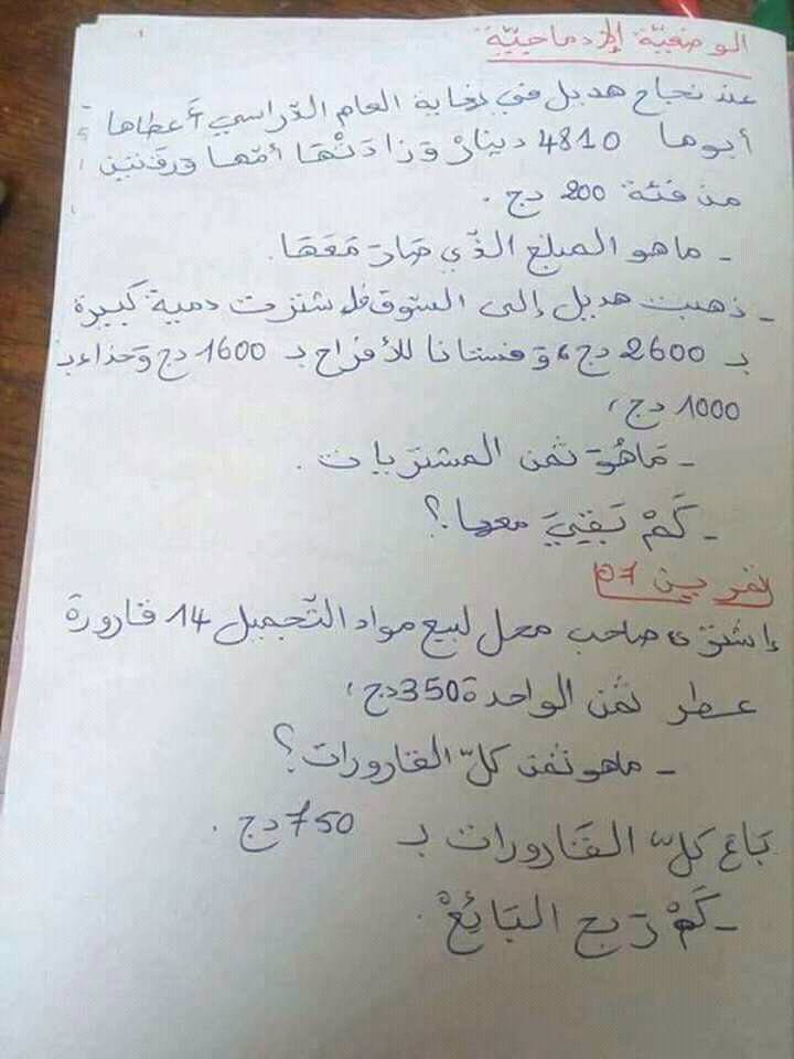 مسائل للسنة السادسة مع الإصلاح امتحانات تونس
