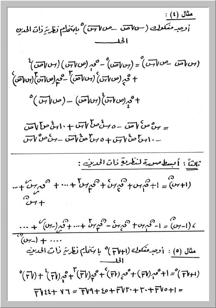 حل تمارين نظريه ذات الحدين الصف السادس الاستاذ حسن عماد Facebook