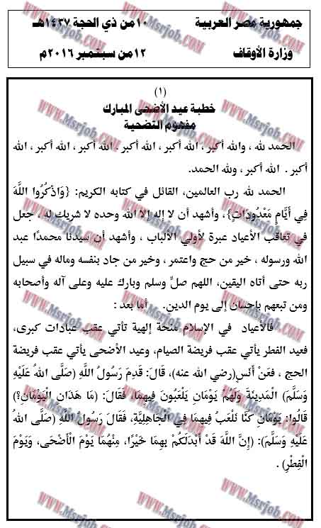 الأوقاف ت علن خطبة عيد الأضحى صور